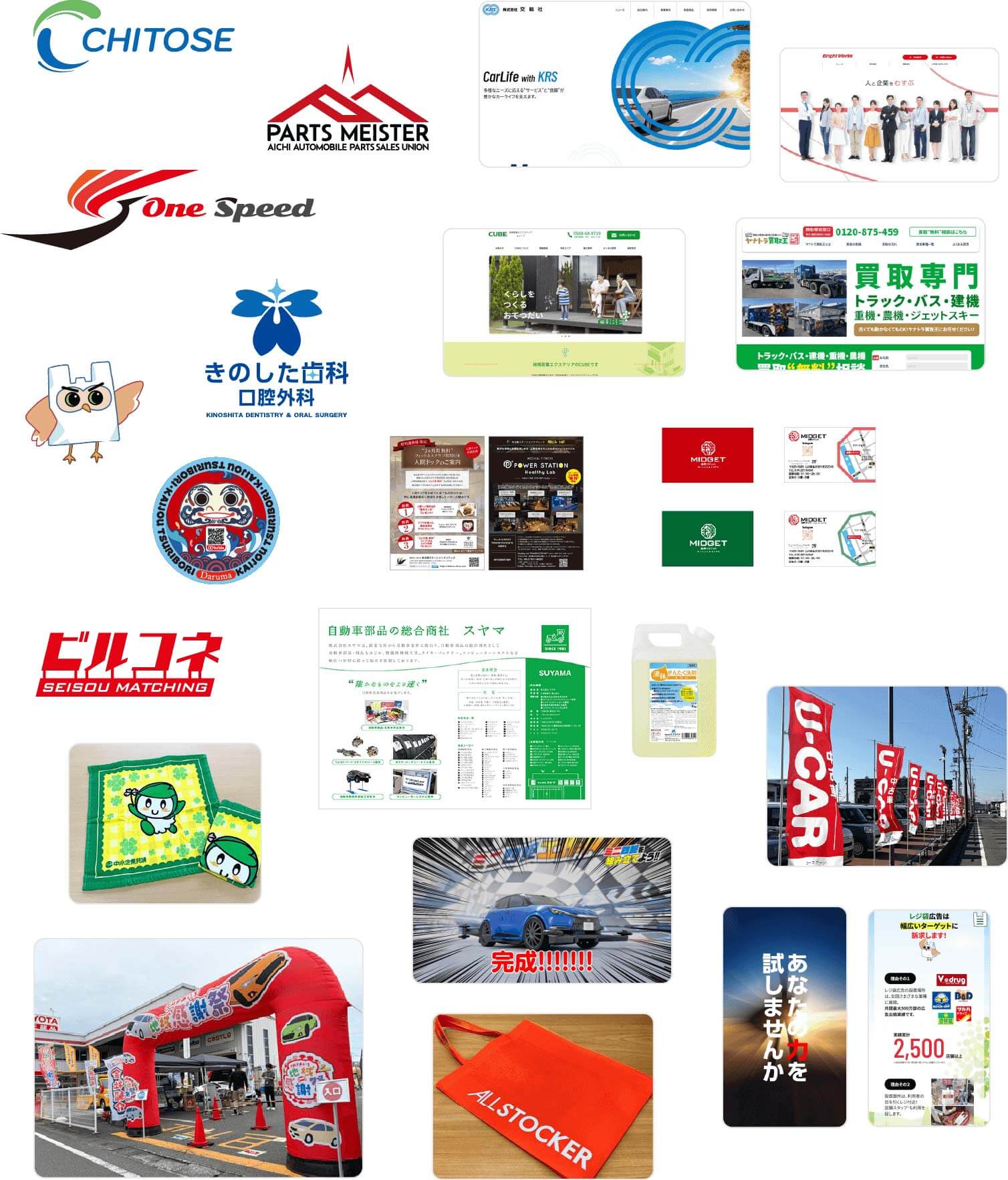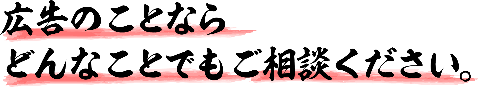 企業ロゴ・ブランドロゴのご提案・制作をはじめ、ホームページ制作、動画コンテンツ制作、名刺・パンフレット・チラシなど印刷物のデザイン制作、名入れ・グッズなどのノベルティ制作、スタッフTシャツ、ポロシャツ、ブルゾンなどのウェア、看板・のぼりなどの屋外広告まで、広告に関するご相談はお気軽にお問い合わせください。